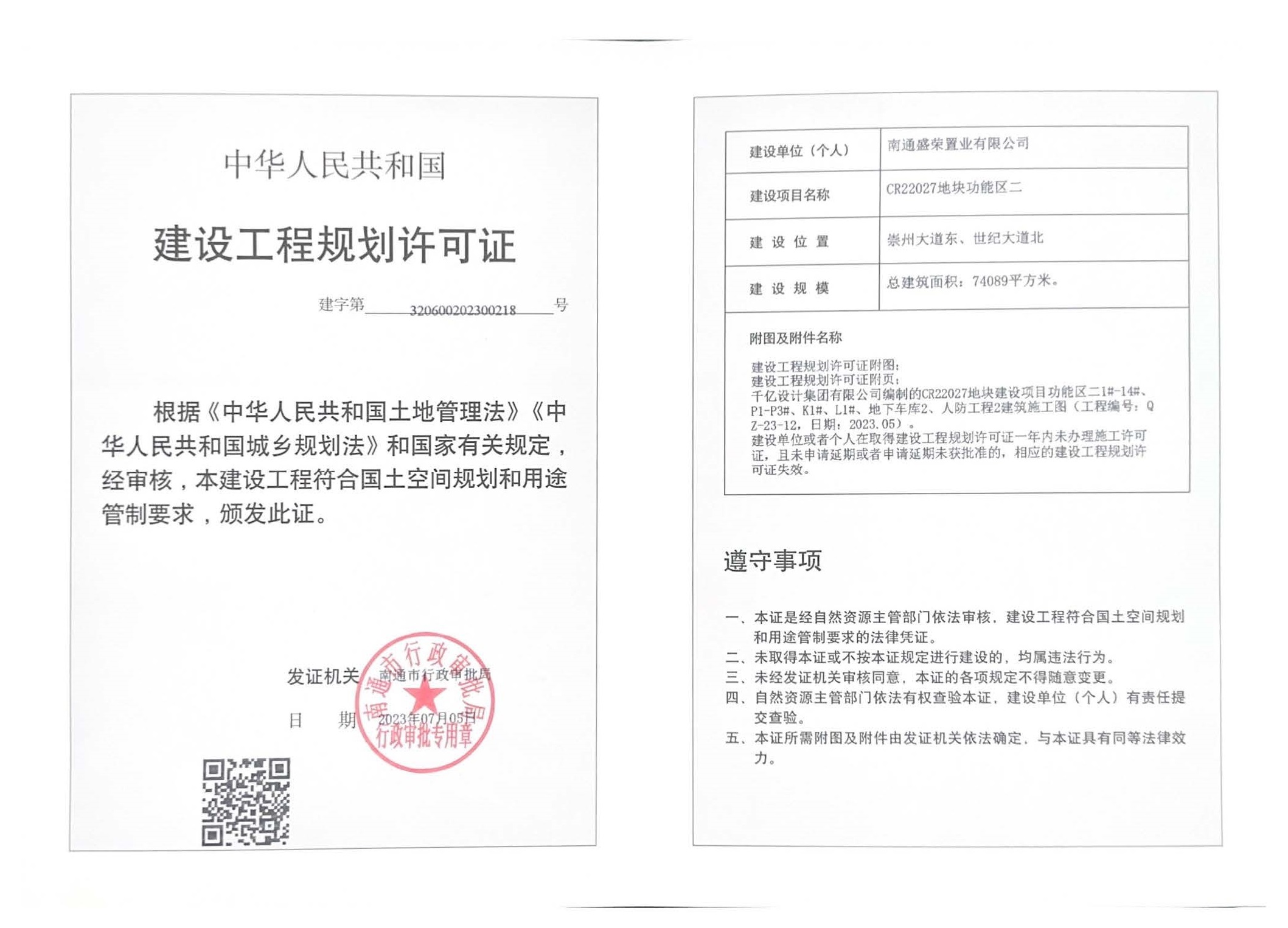 2023年7月5日,沿海集团盛和房产创新区CR22027地块项目南区取得工程规划许可证,意味着项目向正式开工迈进了一大步,为项目有序推进奠定了良好基础。